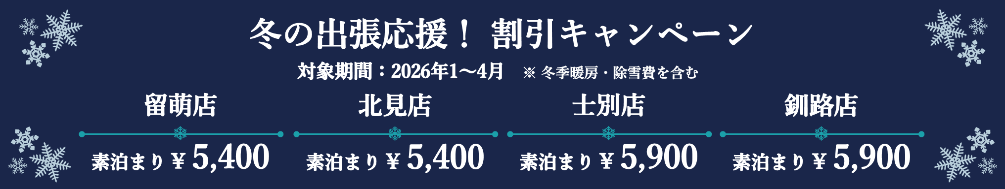【期間延長】冬の出張応援・割引キャンペーン(対象店舗:釧路店、留萌店、北見店、士別店)