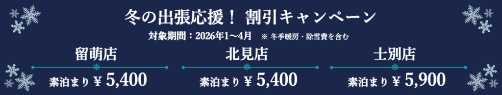 冬の出張応援・割引キャンペーンのお知らせ(対象店舗:留萌、北見、士別)
