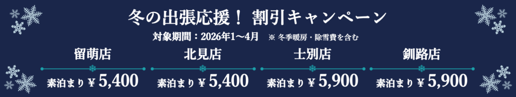 【北見店】 対象期間: 2026年1月5日~3月31日宿泊分